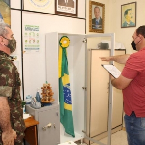 Na oportunidade, Laerton proferiu um juram ento à bandeira, que discorre sobre a importância do município em cumprir os deveres relativos ao serviço militar, a fim de que a cidade contribua para o exercício da cidadania e engrandecimento da Pátria. Os prefeitos, ao jurarem para a bandeira nacional, tornam-se representantes oficiais, firmando o compromisso com relação aos encargos do serviço militar e a manutenção da Junta Militar.