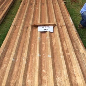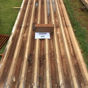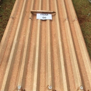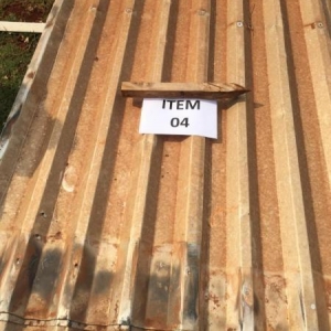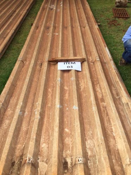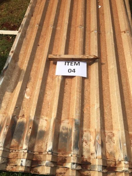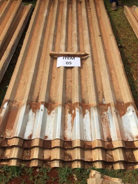 23 telhas de aluzinco de 3,00 metros de comprimento x 1,3 metros de largura. Avaliado em R$ 241,50.