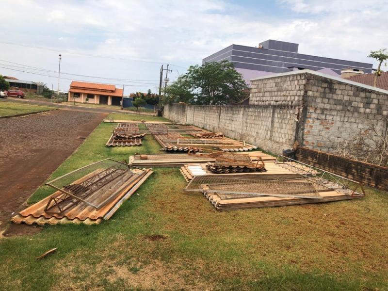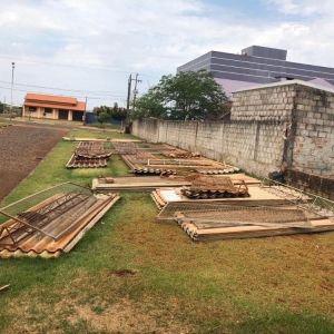 54 telhas de aluzinco de 12 metros de comprimento x 1,3 metros de largura. Avaliado em R$ 2.268,00.