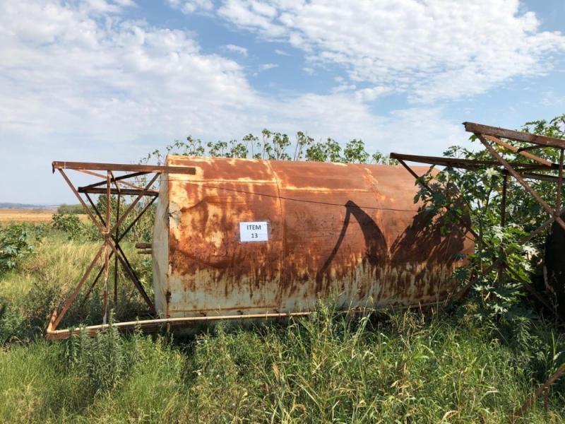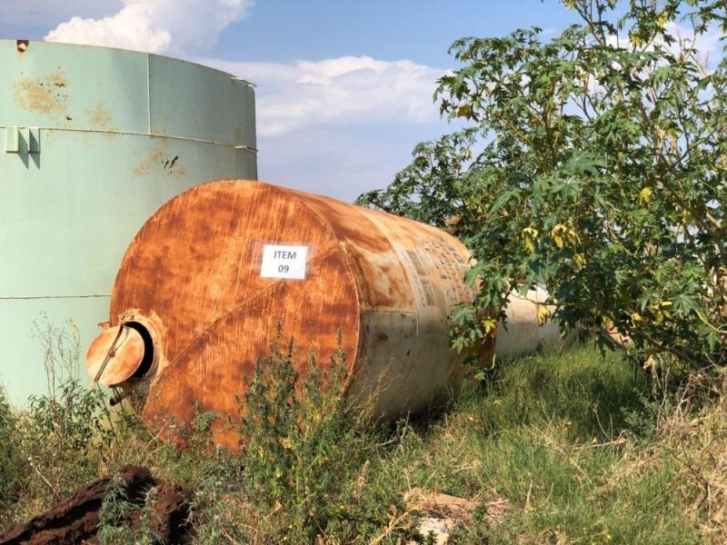 01 Abastecedouro de água estrutura metálica e tubos com capacidade para 15.000 lts, registrado no patrimônio sob o n.º 50193. Avaliado em R$ 310,00.