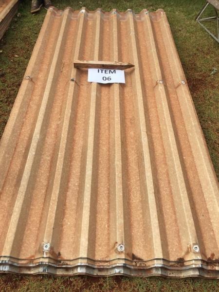 12 telhas de aluzinco de 5,30 metros de comprimento x 1,3 metros de largura. Avaliado em R$ 222,60.
