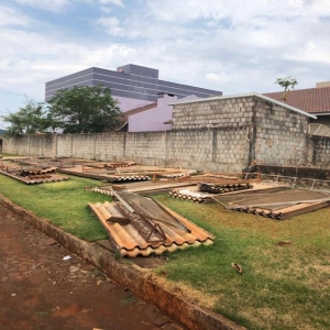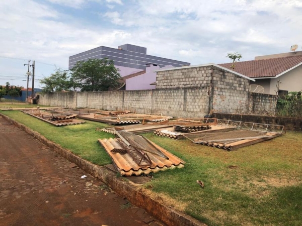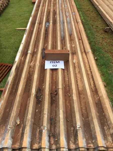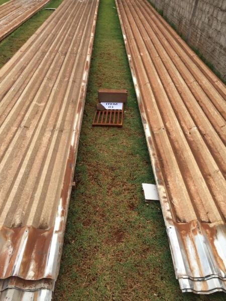 54 telhas de aluzinco de 12 metros de comprimento x 1,3 metros de largura. Avaliado em R$ 2.268,00.
