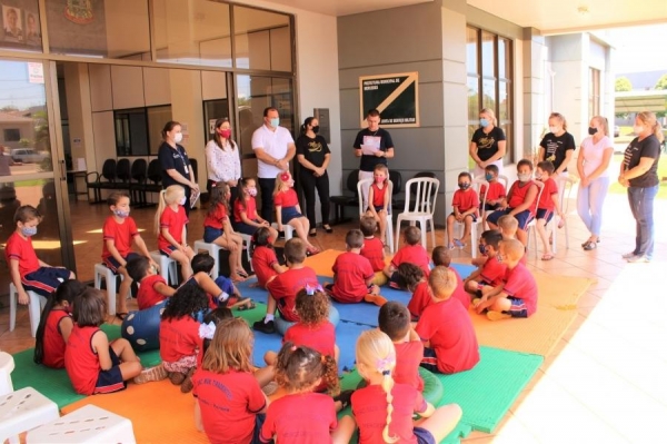 Alunos da Escola Municipal Tiradentes também participaram da entrega e depois acompanharam uma atividade de contação de história, realizada por uma equipe do Sesc.