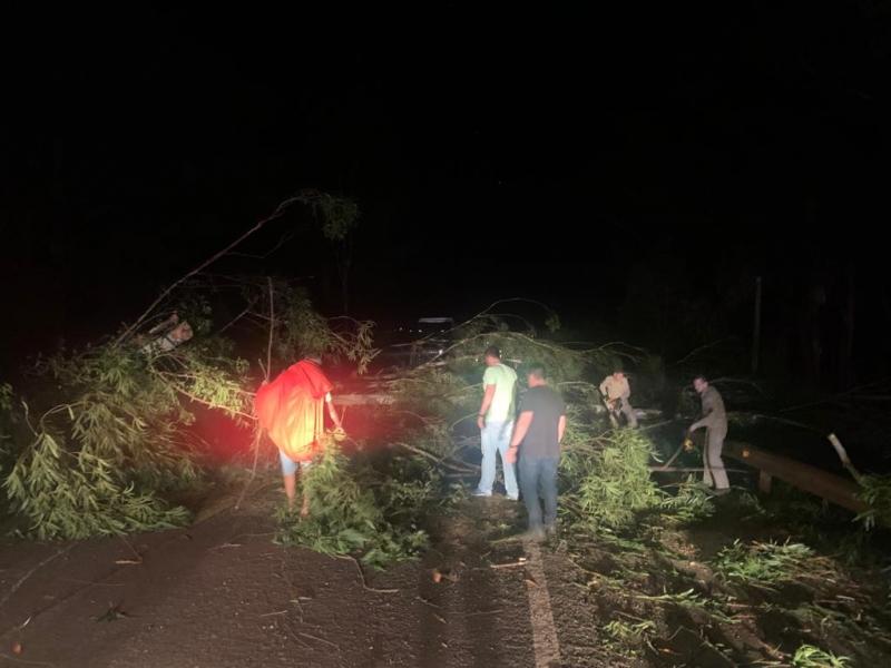 A PRF foi acionada, assim com o Corpo de Bombeiros, que realizou o corte das árvores e liberação da rodovia.
