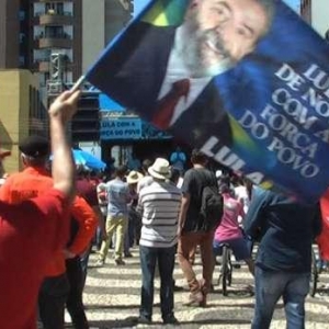 Manifestantes contrários a Lula, colocaram faixas e penduraram uma bandeira em um prédio com a escrita "Aqui não Luladrão". Os manifestantes foram separados pela Polícia Militar para impedir que houvesse qualquer confronto entre as partes.