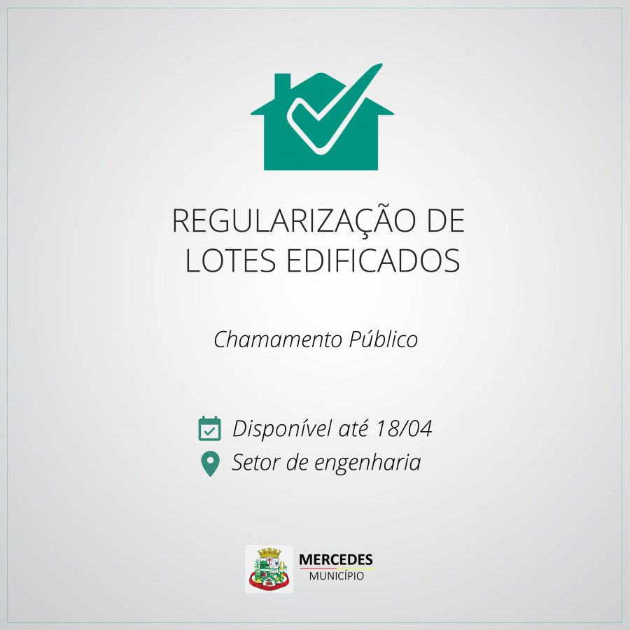A Administração Municipal de Mercedes abriu edital de chamamento público para convocar proprietários de área de lotes urbanos edificados que não possuem as dimensões mínimas para desmembramento.