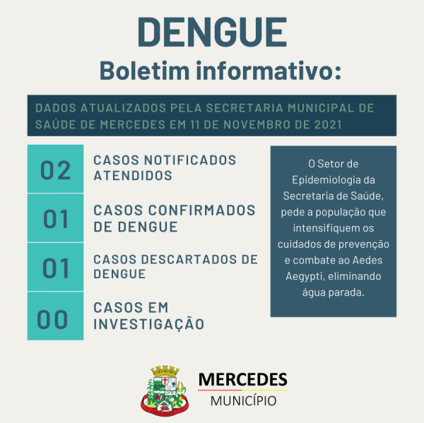 A Secretaria de Saúde de Mercedes confirmou nesta quarta-feira (10), o primeiro caso de dengue no novo período epidemiológico, que começou no dia 01 de agosto e vai até julho de 2022.