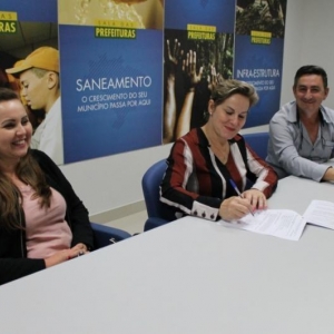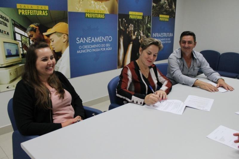 A assinatura do contrato foi realizada pela Prefeita Cleci Loffi, Secretário de Administração Vilson Martins com a presença da Presidente da Câmara de Vereadores Kelli Kolm e dos servidores representantes da Caixa Econômica Federal Paulo Schade e Ana Karla.