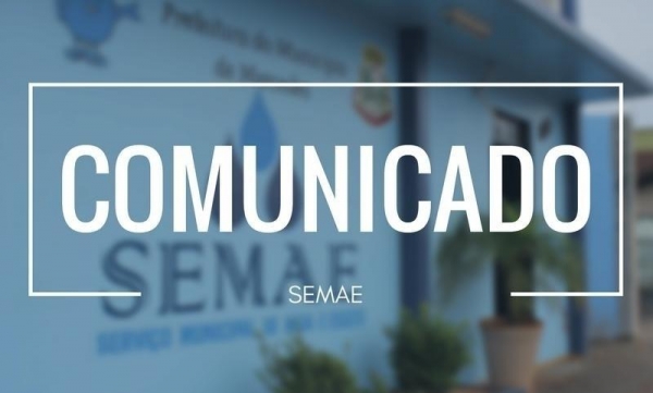 O Serviço Municipal de Água e Esgoto (Semae), comunica que devido a uma manutenção no sistema de abastecimento, poderá haver falta de água na sede e mais algumas linhas do interior do Munícipio, nesta sexta-feira (10).