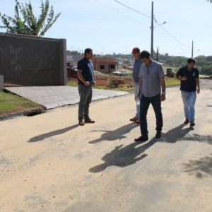 Durante a visita, que ocorreu no Loteamento Dillemburg, estiveram presentes o Secretário de Obras de Foz do Iguaçu Luís Cezar Furlan, Diretor de Produção Asfáltica Eliel Agapito Barbosa e o Diretor de Manutenção Viária Anderson Maciel Freire.