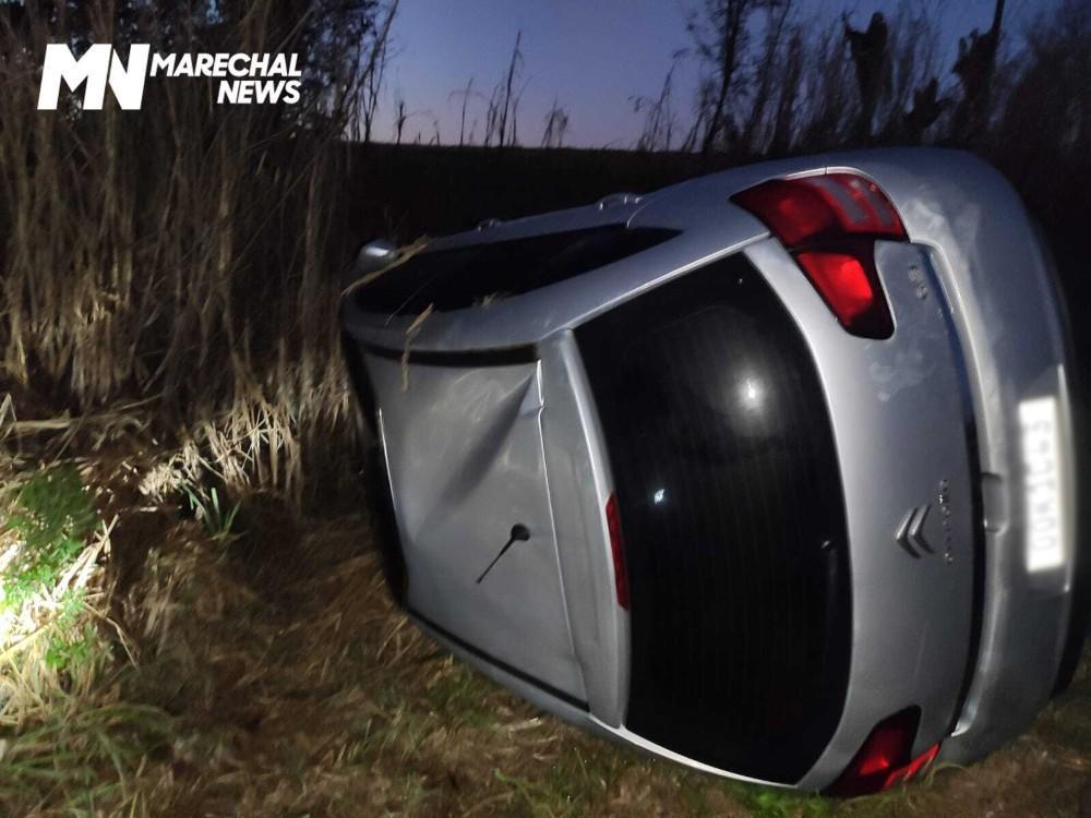 Uma equipe da PRE Posto de Marechal Rondon atendeu nesta madrugada de segunda-feira (30), a um capotamento de veículo na rodovia que liga a Marechal Cândido Rondon a Nova Santa Rosa, há cerca de 2 km do posto da polícia.