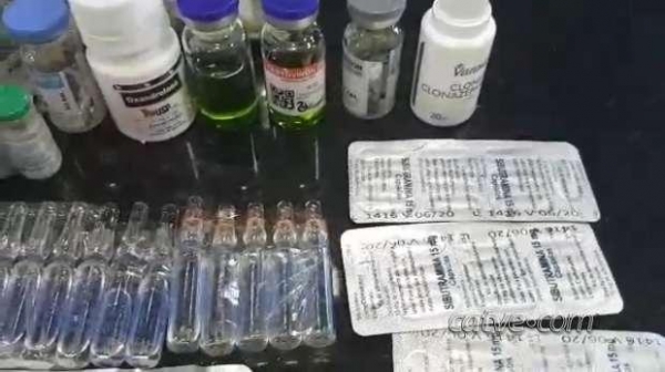 No porta malas foram encontrados 50 munições calibre 380 e vários medicamentos e anabolizantes.