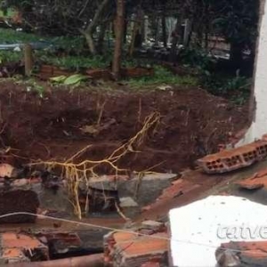 A moradora contou que a casa foi invadida pela chuva que escoa da BR 467. A enxurrada que arrancou a estrutura também invadiu a casa, molhando os móveis e danificando eletrodomésticos.