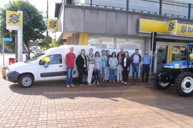 Estiveram presentes na entrega a Prefeita Cleci Loffi, o Secretário de Agricultura Sebastião Kock, Diretor de Agricultura André Backes, o Presidente da Apromer Carlos Bernicker, a Gerente da Agência do Banco do Brasil de Mercedes Cristiane Martins Prado e produtores orgânicos da Apromer.