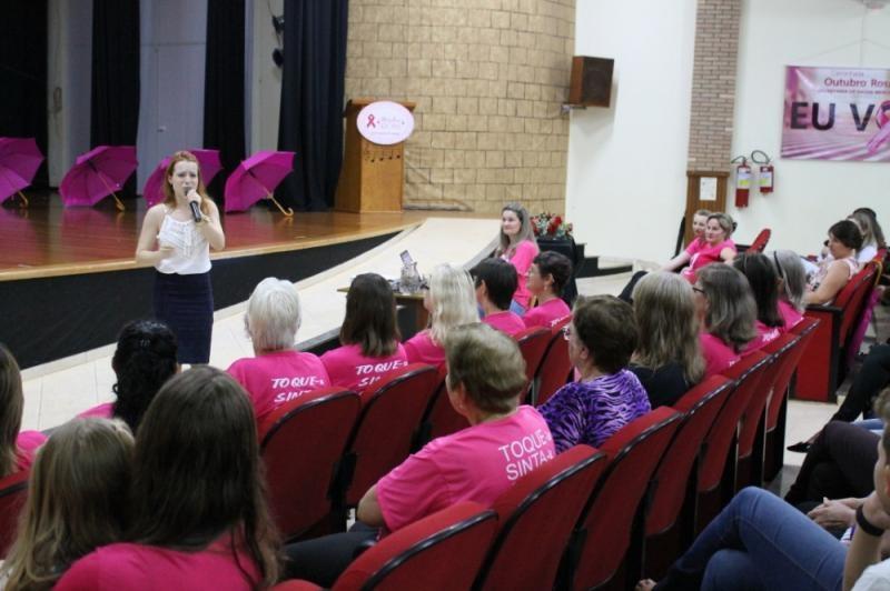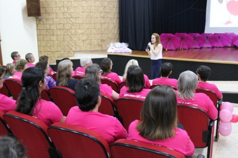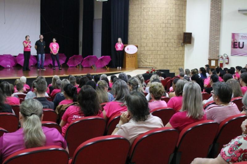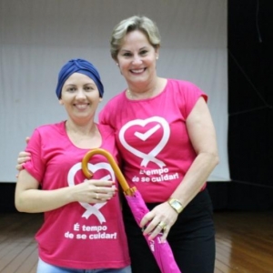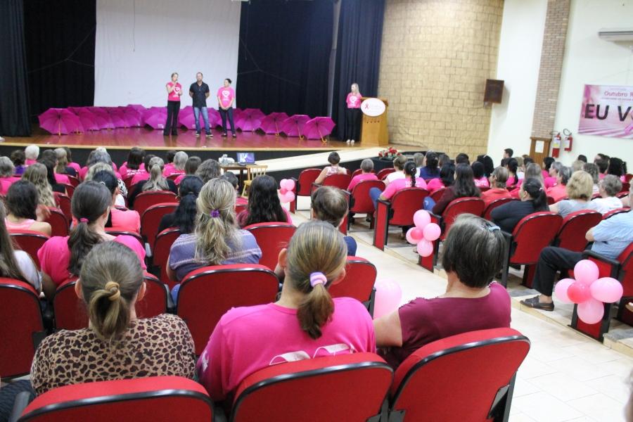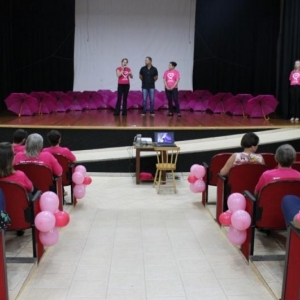 Ao final, houve a apresentação de um vídeo sobre a realidade das mulheres do município que enfrentam ou enfrentaram o câncer de mama.