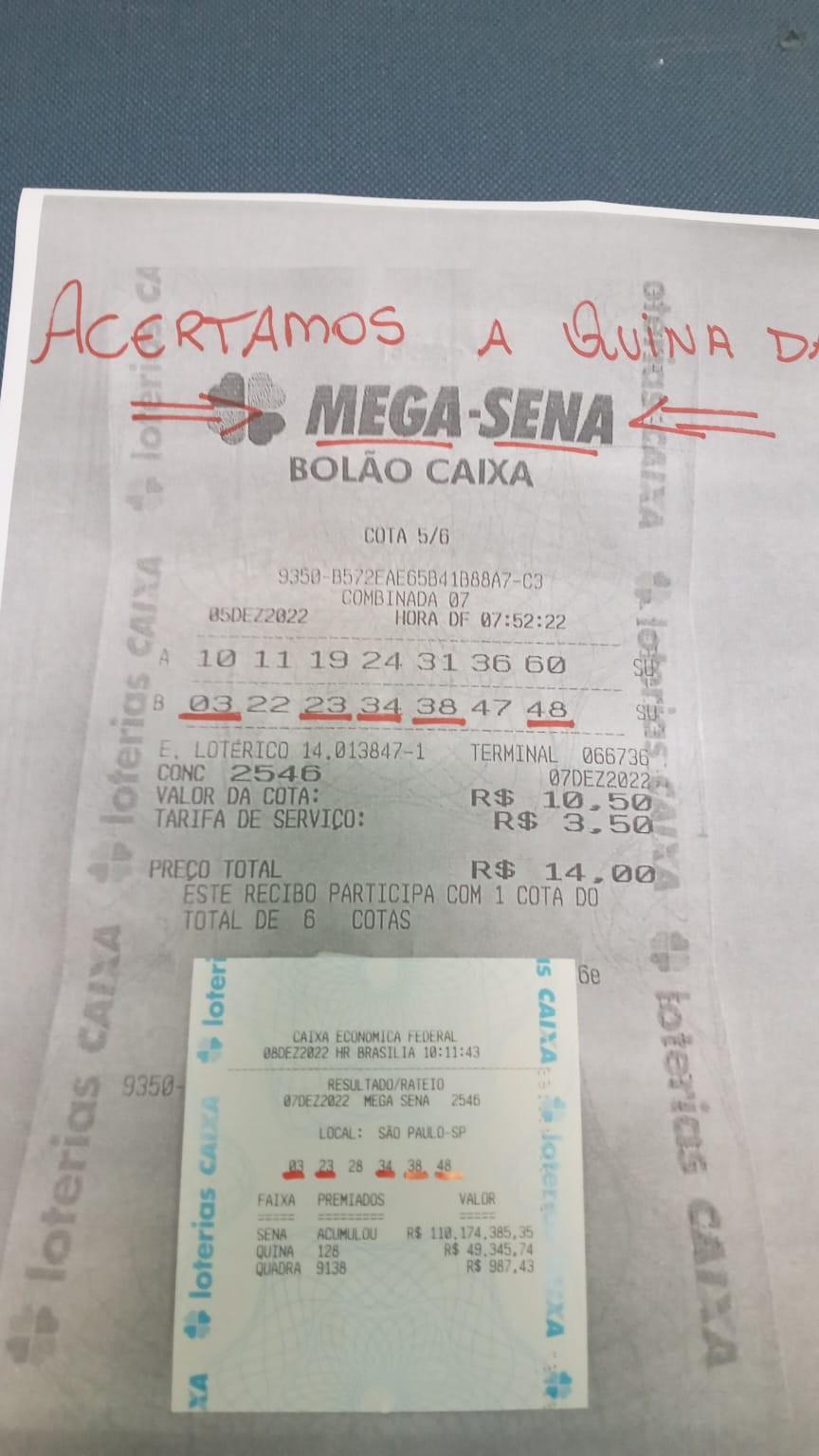 O valor total do prêmio é de pouco mais de R$ 96 mil reais, cada apostador deve receber em torno de R$ 17 mil reais.