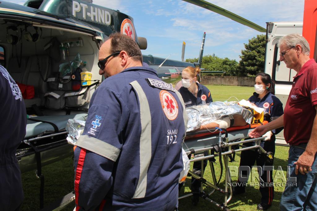 O nova-santa-rosense foi rapidamente atendido e devido a gravidade do quadro clínico, o helicóptero do Samu foi acionado e Waldir foi transferido para o Bom Jesus em Toledo, o paciente precisou de hogixênio e no momento da transferência ele não estava consciente.