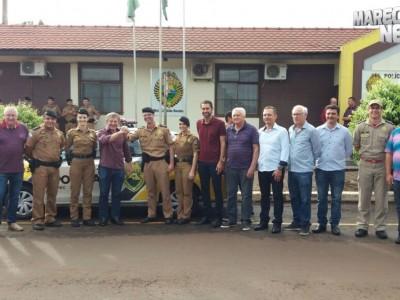 Várias autoridades nse fizeram presente no ato de entrega, entre elas, o Deputado Elio Lino Rusch, o Prefeito de Marechal Cândido Rondon, Marcio Rauber, o Capitão Souza, da Policia MIlitar.