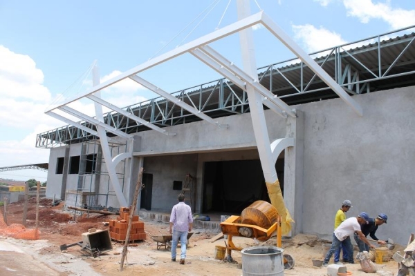 Nesses últimos dias a empresa responsável pelo desenvolvimento do projeto está realizando a instalação da cobertura metálica e reboco, dando sequência ao cronograma das obras de ampliação.