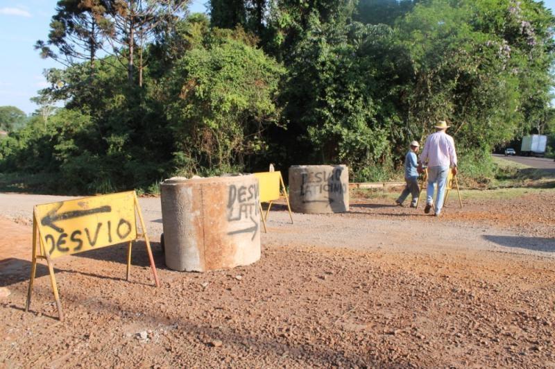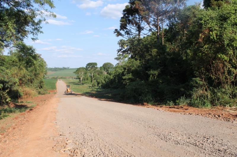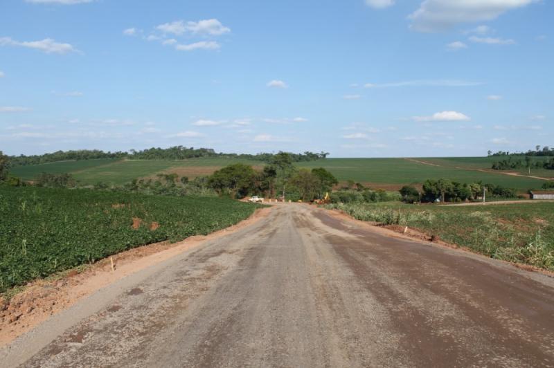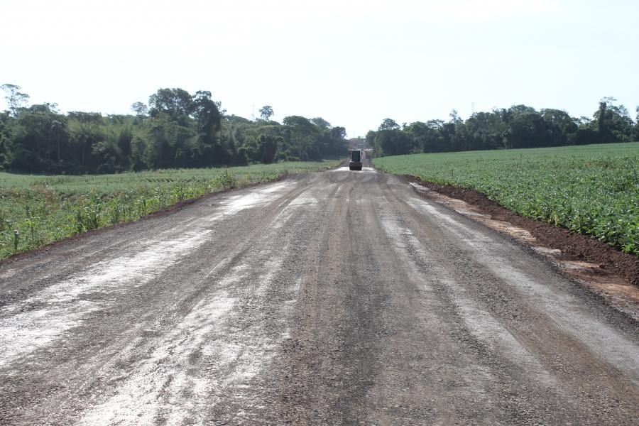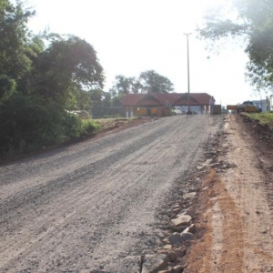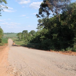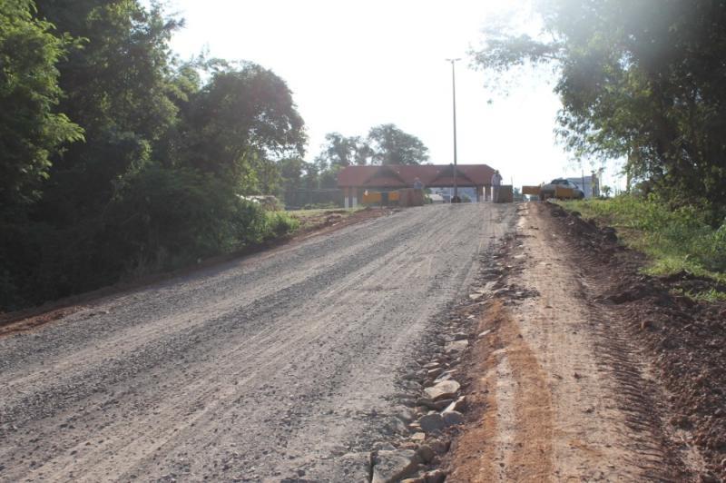 O trecho de 1.800 metros está recebendo a construção base para a colocação da pavimentação asfáltica por meio de um convênio entre o município e a Itaipu Binacional.