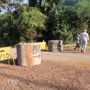 Para evitar o comprometimento da base o trecho está bloqueado, portanto acesso dos motoristas para a comunidades das Sangas Forquilha e Ituporanga deve feito pela Laticínios Quatá.