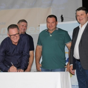Participaram da cerimônia de lançamento o Prefeito Laerton Weber, o Diretor do Sesc Emerson Sextos, o Presidente do Sindicomar Ademar Bayer, o Vice-Prefeito Alex Graunke, demais autoridades e parte dos pacientes que serão atendidos.
