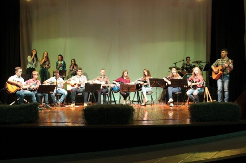 Os alunos instrumentistas e vocais se prepararam durante dois meses para apresentar oito sucessos da música sertaneja raiz.