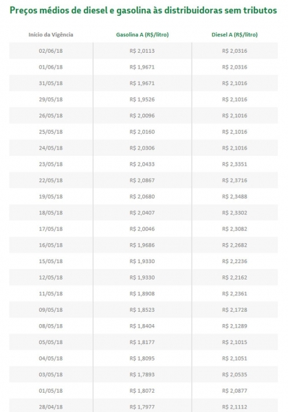 á o preço do diesel seguirá em R$ 2,1016 o litro nas refinarias até o dia 7 de junho, conforme ficou estabelecido pelo programa de subvenção ao combustível anunciado pelo governo