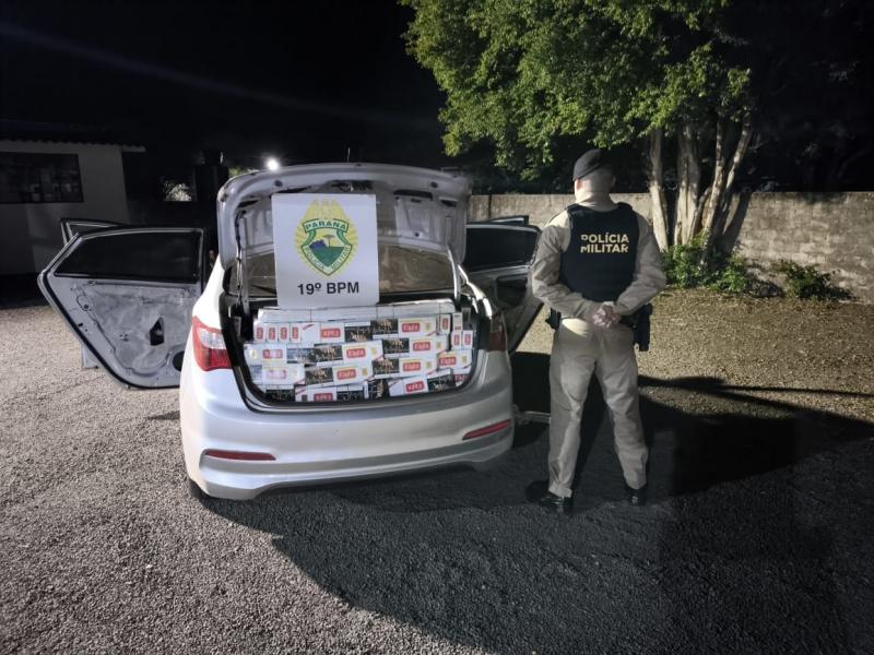 A Polícia Militar (PM) apreendeu um veículo furtado carregado de cigarros contrabandeados na Linha Novo Rio do Sul, em Mercedes, na madrugada de segunda-feira (15).