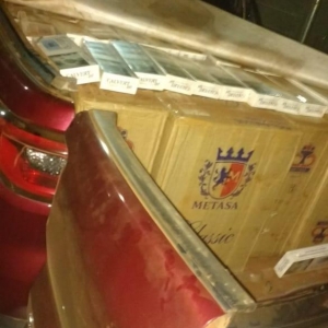 Durante vistoria no veículo foi constatado que o mesmo estava carregado com cigarros oriundos do Paraguai, de Marca Calvert e Classic, que também em consulta Sesp/Intranet, através do Chassi do Veículo, foi constatado que o mesmo é produto de Roubo/Furto, conforme BOU2018/1038228, e as Placas originais seria BDW-1314.