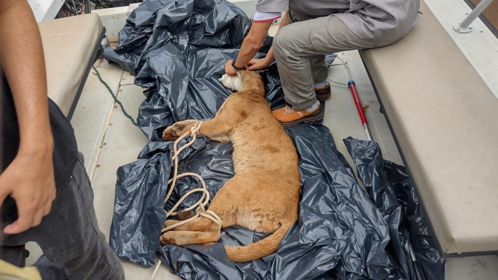 Ao longo desta terça-feira (22), Força Tarefa composta por PF, BPFRON, PMPR, BOMBEIROS e Prefeitura Municipal foi acionada por moradores para resgate de uma onça parda que se encontrava acuada em cima de uma árvore dentro do município.