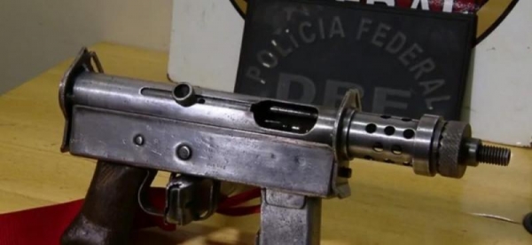 Dois homens foram presos pela Polícia Federal portando uma submetralhadora 9mm de uso restrito das Forças Armadas em uma estrada de Matelândia, no oeste do Paraná.