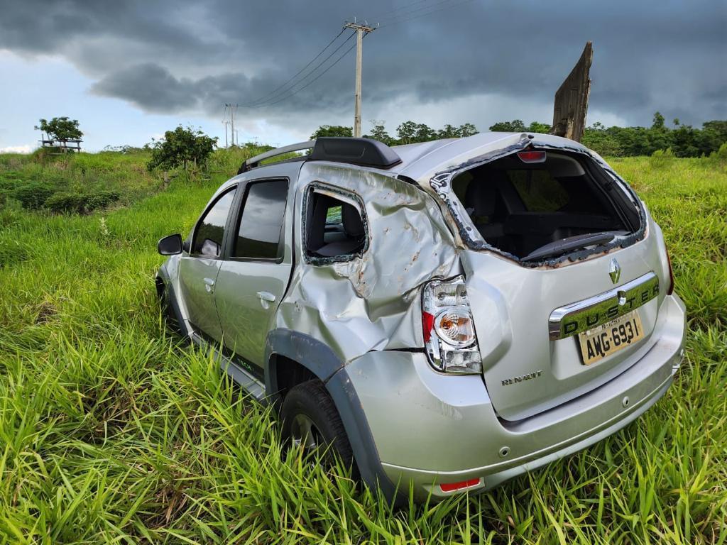 No KM 42da rodovia estadual, o condutor perdeu o controle da direção saiu da pista de rolamento e após atingiu uma placa existente lado esquerdo da via, base seu sentido de trafego, capotando o Renault.
