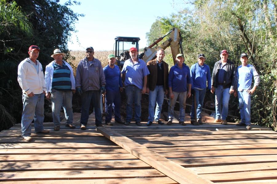 Ainda na tarde desta terça-feira (10) o Prefeito Interino Edson Schug, acompanhado do Secretário de Viação e Obras Altair Loffi e dos diretores da pasta, estiveram no local para conferir os trabalhos de reforma da ponte.