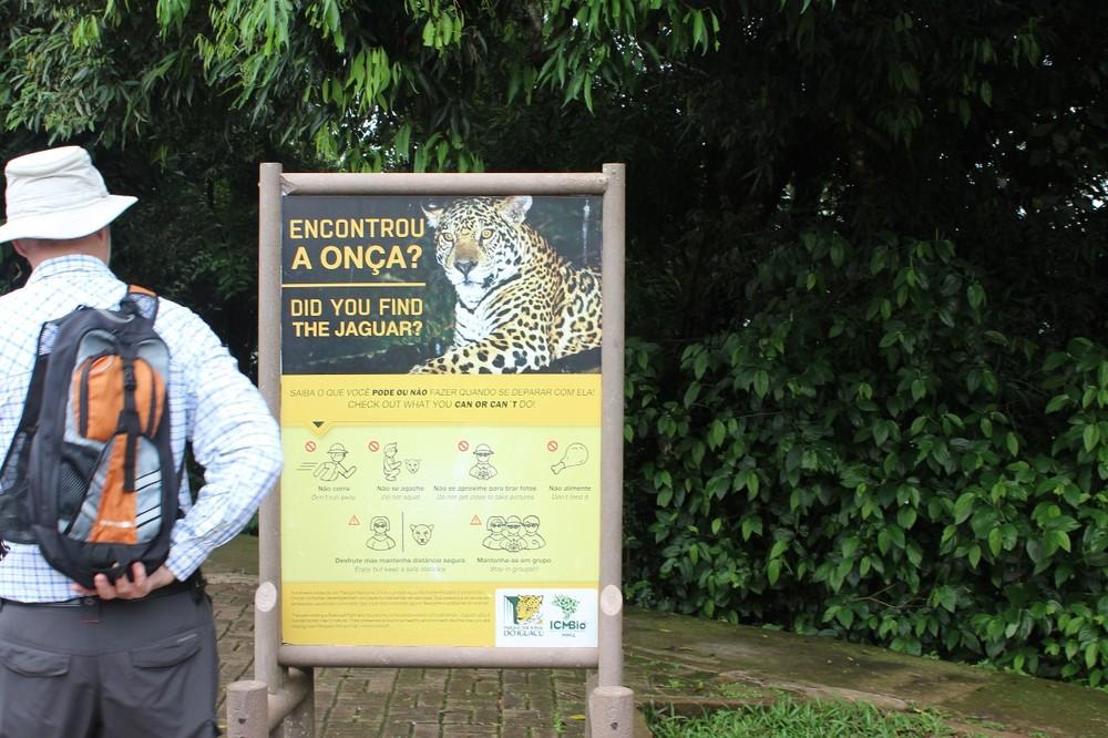 A direção do Parque Nacional do Iguaçu decidiu espalhar placas pela unidade para orientar os visitantes em caso de encontrarem onças durante o passeio e para evitar acidentes.