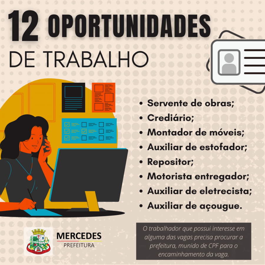 O Posto Avançado do Trabalhador em Mercedes, implantado pelo prefeito Laerton Weber, está com 12 vagas de trabalho disponíveis em diversas funções profissionais.