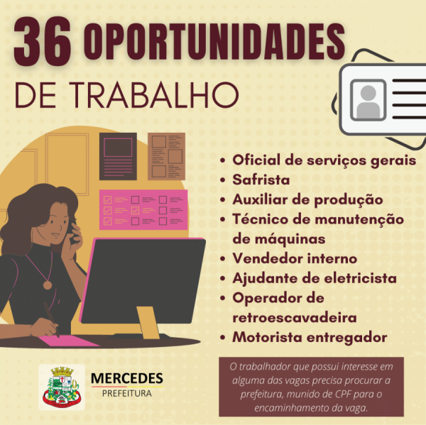 O Posto Avançado do Trabalhador em Mercedes, implantado pelo prefeito Laerton Weber, está com 36 vagas de trabalho disponíveis em diversas funções profissionais.