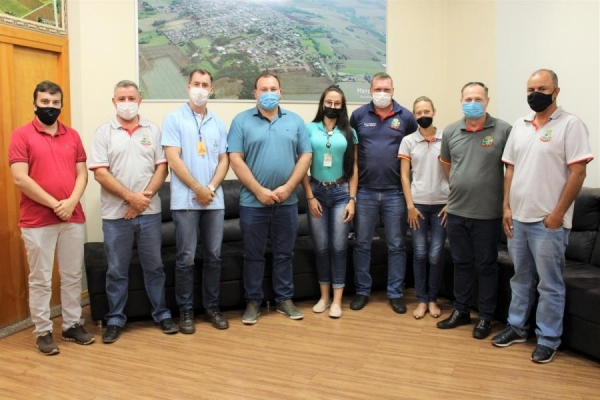 Participaram da reunião o prefeito Laerton Weber, o gestor de convênio da Itaipu, Edino Jonas Schmidt Krug, além de secretários municipais.