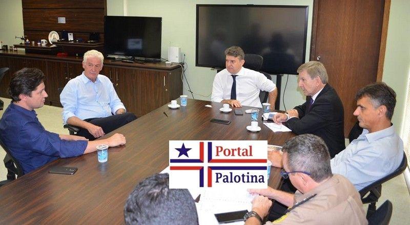 O prefeito de Palotina, Jucenir Stentzler, o prefeito de Guaíra, Heraldo Trento, e o deputado estadual Elio Rusch estiveram reunidos nesta semana, no dia 6, com o secretário de Segurança Pública do Paraná, Julio Cezar dos Reis e sua assessoria. Durante a audiência foram tratadas das demandas dos municípios, questões de segurança e estruturais que são solicitadas junto ao governo do estado e tem contado com o apoio e interveniência do deputado Elio.