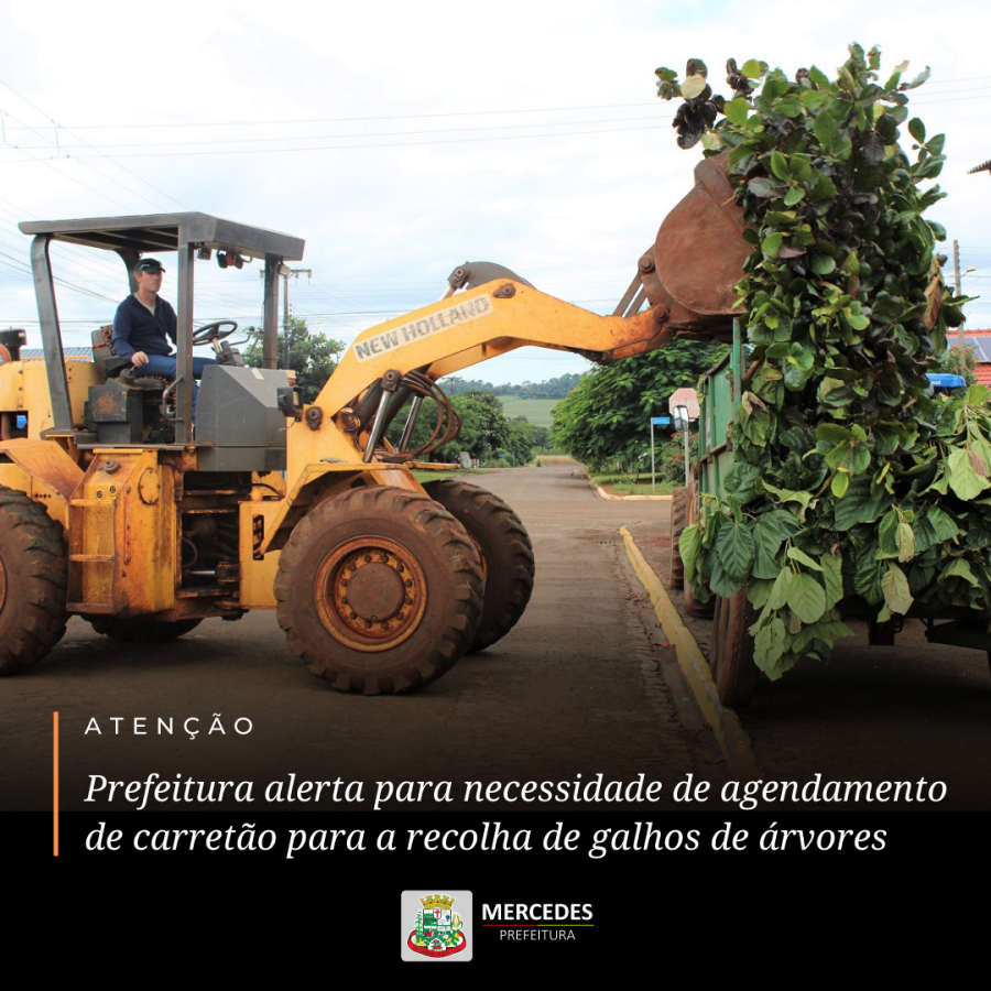 A Prefeitura de Mercedes alerta as pessoas que irão realizar a poda de árvores, para a necessidade de realizar o agendamento de carretão na Secretaria de Agricultura para a retirada do material.