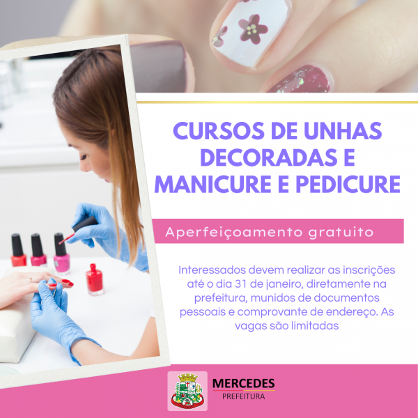 Prefeitura de Mercedes, por meio da Secretaria de Desenvolvimento Econômico Trabalho e Emprego, está ofertando mais uma oportunidade de aperfeiçoamento profissional. Estão abertas as inscrições para os cursos de Unhas Decoradas e Manicure e Pedicure.