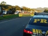 Caminhoneiros bloquearam, nesta manhã de segunda-feira (21), uma faixa em cada sentido da BR-277, em Paranaguá.