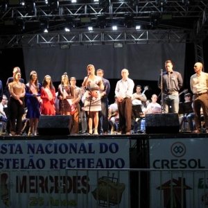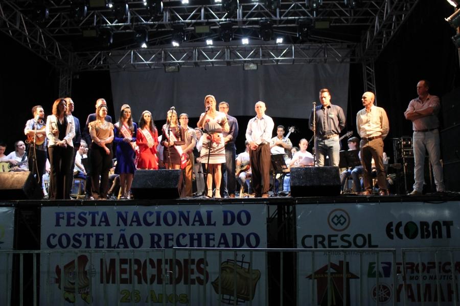 A solenidade de abertura da festa do aniversário de 26 anos de Mercedes ocorreu no início da noite de sexta-feira (07) com a presença da Prefeita Cleci Loffi, Vice-Prefeito Edson Schug, secretários municipais, vereadores, representantes de entidades além da população em geral.