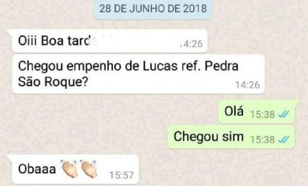 Os diálogos são datados de junho e julho do ano passado e mostram preocupação e insistência por parte do edil ao cobrar os empenhos das notas. Através das conversas é possível ver que o vereador pede pelo empenho das pedras irregulares no distrito de São Roque, ao passo em que em outro diálogo o edil cita assim: “quebrou o orçamento”.