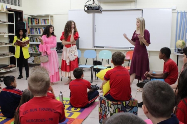 Além da psicóloga, participaram da ação a Miss Mercedes Gabriela Genz e alunas da Casa da Cultura de Mercedes.