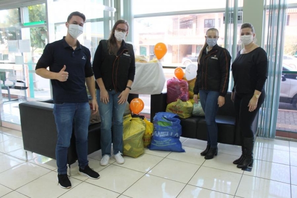 A Secretária de Assistência Social e Presidente do Provopar Andréa Hahn recebeu os donativos que foram entregues pelos colaboradores da unidade, momento em que também parabenizou a Cresol pela iniciativa.