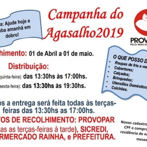O Provopar de Mercedes inicia nesta segunda-feira (01), com o lema “Ajude hoje e receba amanhã em dobro”, a Campanha do Agasalho 2019.