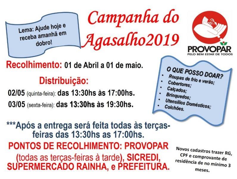 Provopar inicia hoje arrecadação de donativos para a Campanha do Agasalho 2019