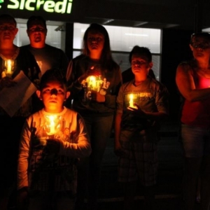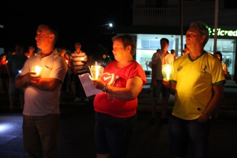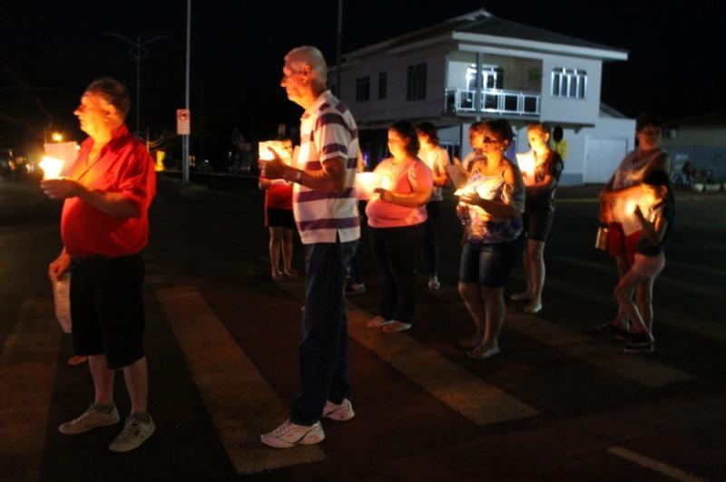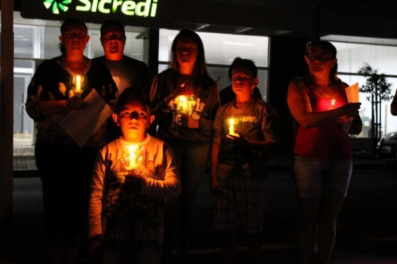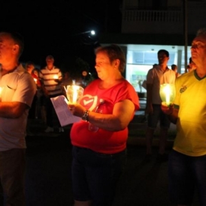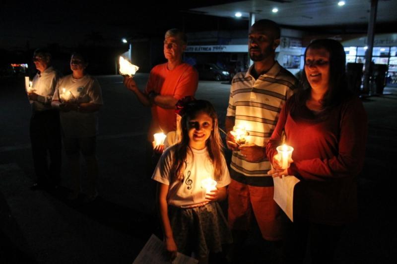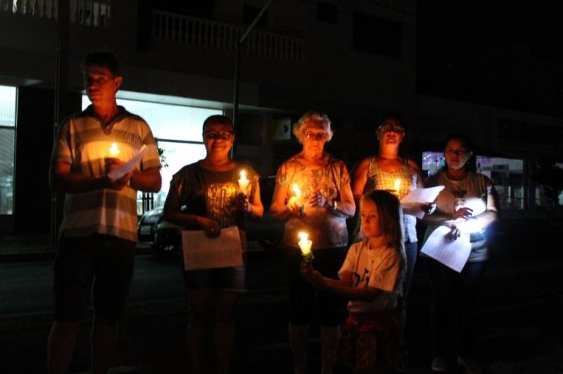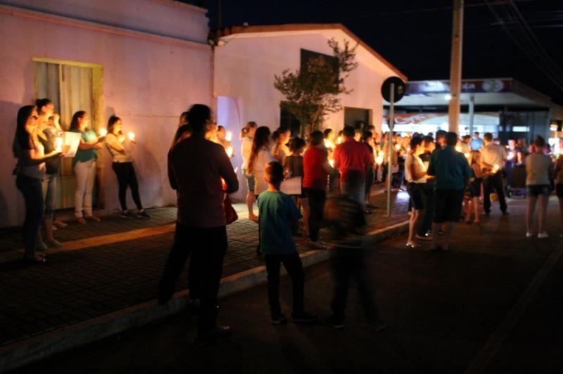 O grupo, com velas e lanternas, saiu da Avenida João XXIII, até chegar ao Paço Municipal, onde está concentrada a decoração natalina do município.