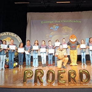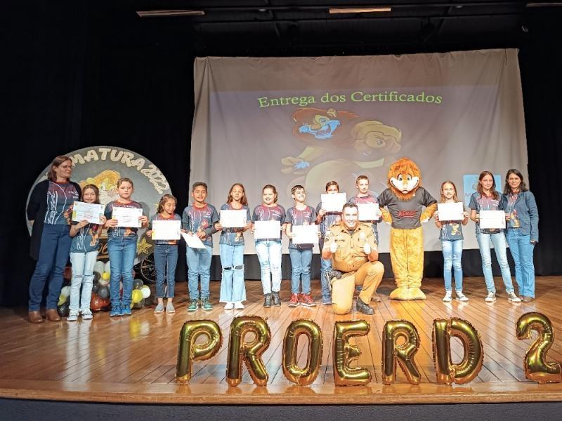 48 alunos dos 5º anos das escolas Tiradentes e José de Alencar concluíram participação no Programa Educacional de Combate às Drogas (Proerd). A cerimônia de encerramento das atividades foi realizada na noite de ontem (12) na Casa da Cultura.